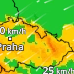 vítr SV 25 km/h