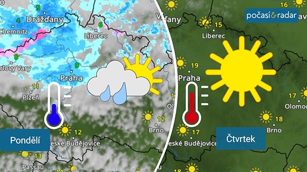 Dnes bude večer i v noci jasno. Aktuální teplota činí 14 °C a v noci klesne na přibližně 7 stupňů.