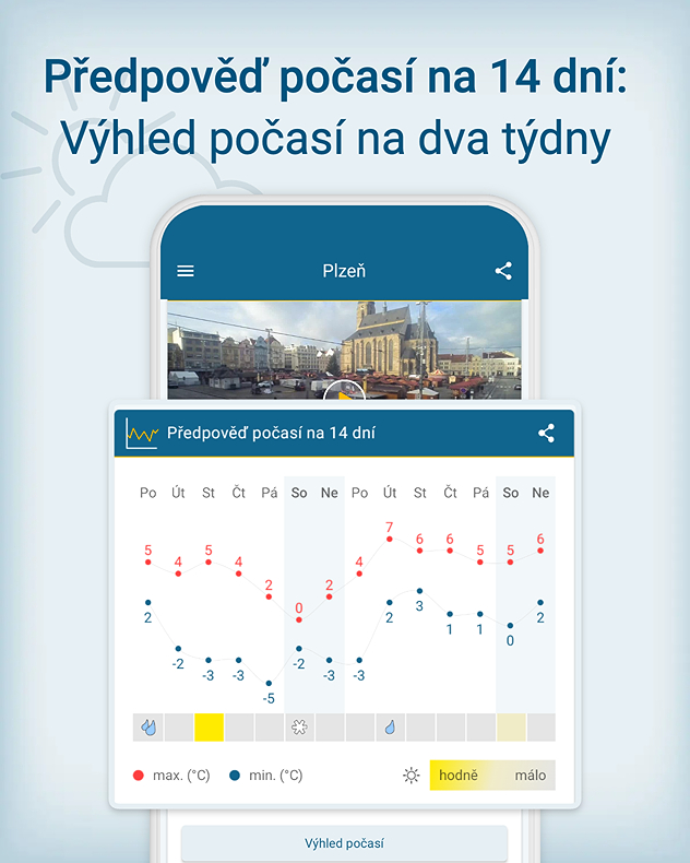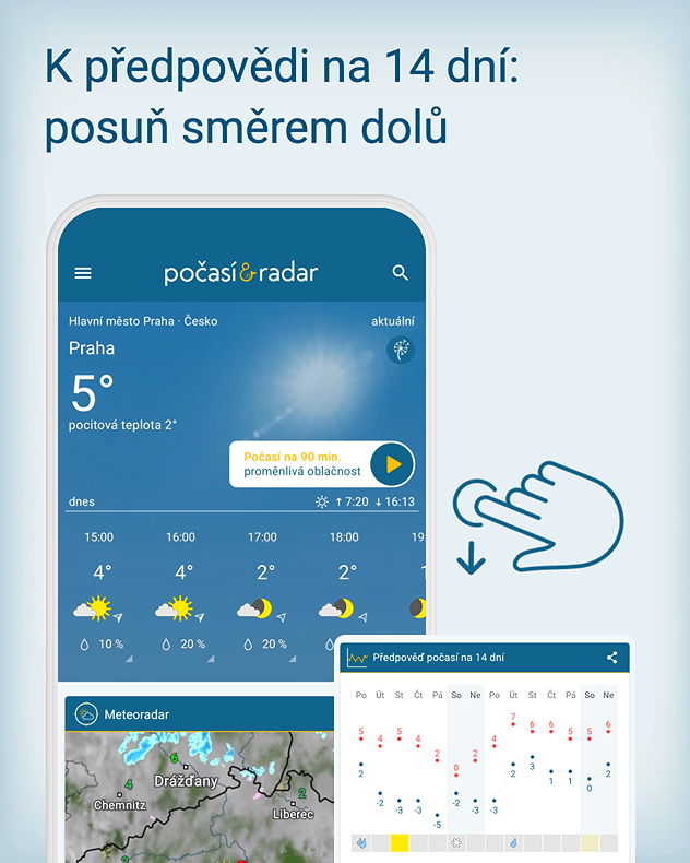 Díky 14denní předpovědi počasí v aplikaci Počasí & Radar budete před nevyzpytatelnými povětrnostními jevy vždy o krok napřed!