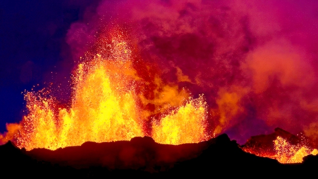 Vulkanický systém se nedávno zklidnil a nic nenasvědčovalo tomu, že by se měl v nejbližší době znovu projevit. I přesto se najednou ozvala série otřesů a z trhliny v zemi vystřelily do výšky lávové fontány.