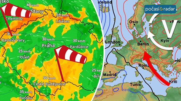 Meteoradar, screenshot, 12. 1. 23:00: Teplá fronta do Česka kromě oteplení přinese také sněžení, déšť a mrznoucí srážky s tvorbou ledovky.