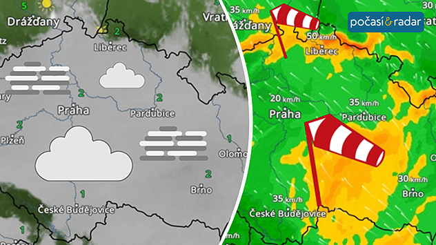 Meteoradar, screenshot, 9. 1. 9:00: Přes Česko v pátek přechází okludující frontální systém v souvislosti s tlakovou níží Goretti. Po přední straně této níže k nám začíná pronikat teplejší vzduch.