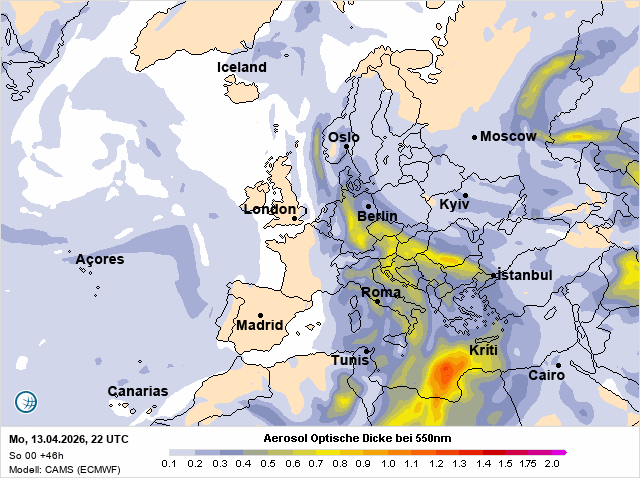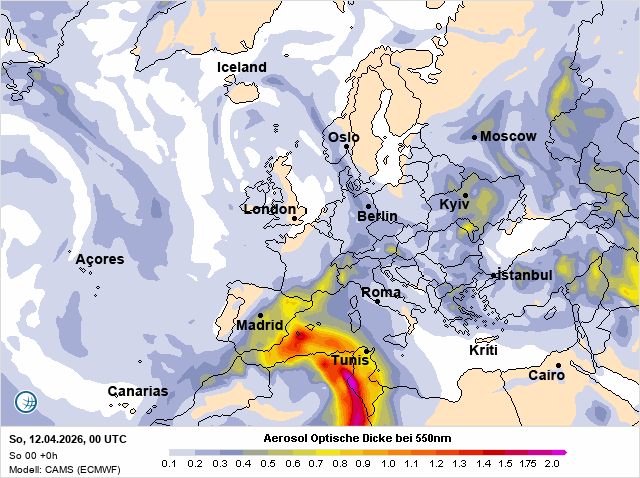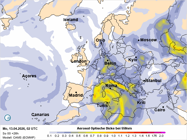 V neděli ráno se nad západní a střední částí Středozemního moře rozprostřela výrazná oblačná pokrývka. Při pohledu ze země působí obloha jen jako změť šedi a nepůsobí nijak zajímavě. Ze satelitního pohledu se však ihned prozradí, že nejde jen o obyčejnou oblačnost, ale že v celém systému hraje velkou roli saharský prach.