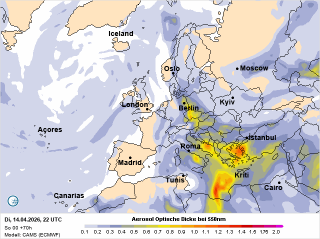 V následující galerii se podívejte, jak se bude prach postupně přesouvat až nad naše území. Dorazí pravděpodobně během úterý.