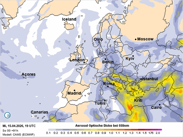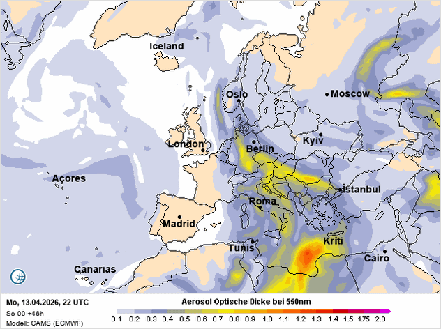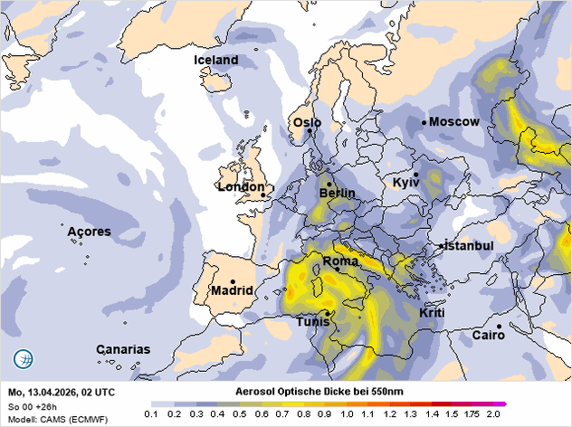 V neděli ráno se nad západní a střední částí Středozemního moře rozprostřela výrazná oblačná pokrývka. Při pohledu ze země působí obloha jen jako změť šedi a nepůsobí nijak zajímavě. Ze satelitního pohledu se však ihned prozradí, že nejde jen o obyčejnou oblačnost, ale že v celém systému hraje velkou roli saharský prach.