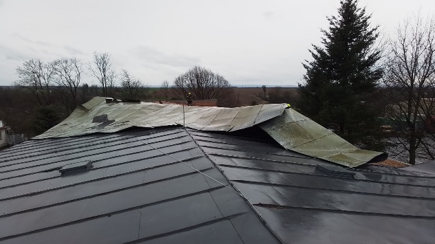 S přechodem fronty byly spojené i nárazy větru. Kolem 12:59 lidé na tísňovou linku nahlásili událost, při které vítr strhl plechovou střechu v Litomyšli. Na místo byli vysláni dobrovolní hasiči z Litomyšle. Pád střechy poškodil i dvě osobní auta. Za poskytnuté fotografie a informace děkujeme HZS Pardubického kraje.