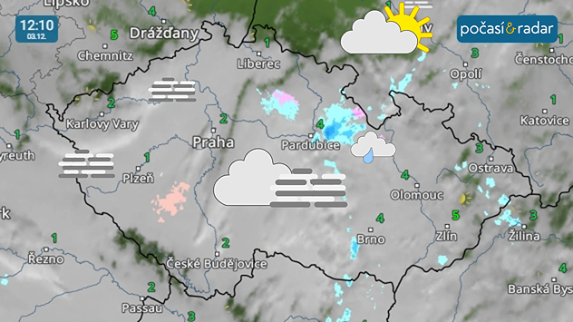 V Česku pokračuje počasí teplotní inverze. Děje se tak vzhledem k přílivu teplého vzduchu ve vyšších vrstvách atmosféry od jihu. Většinu našeho území tak pokrývá vrstva mlh a nízké oblačnosti. Slunečné počasí zavládne místy ve vyšších horských polohách a v závětří hor, například ve Frýdlantském výběžku.