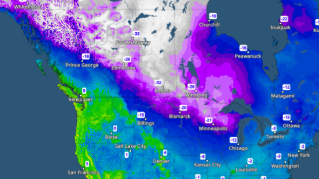 Přes Kanadu a severní část Spojených států se tento týden rozlévá původem arktický vzduch od severu. Teploty klesají hluboko pod nulu a padají i rekordy pro tuto roční dobu.