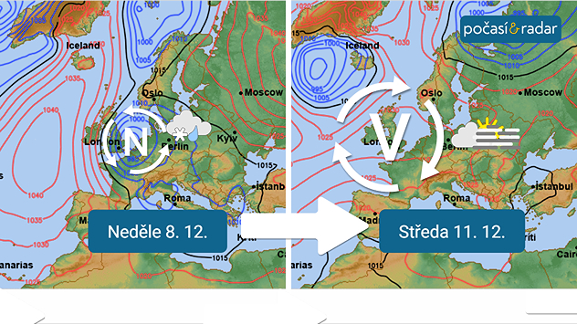 Chod českého počasí bude v nadcházejících dnech určovat nejprve tlaková níže, během příštího týdne se ke slovu dostane naopak oblast vyššího tlaku vzduchu.